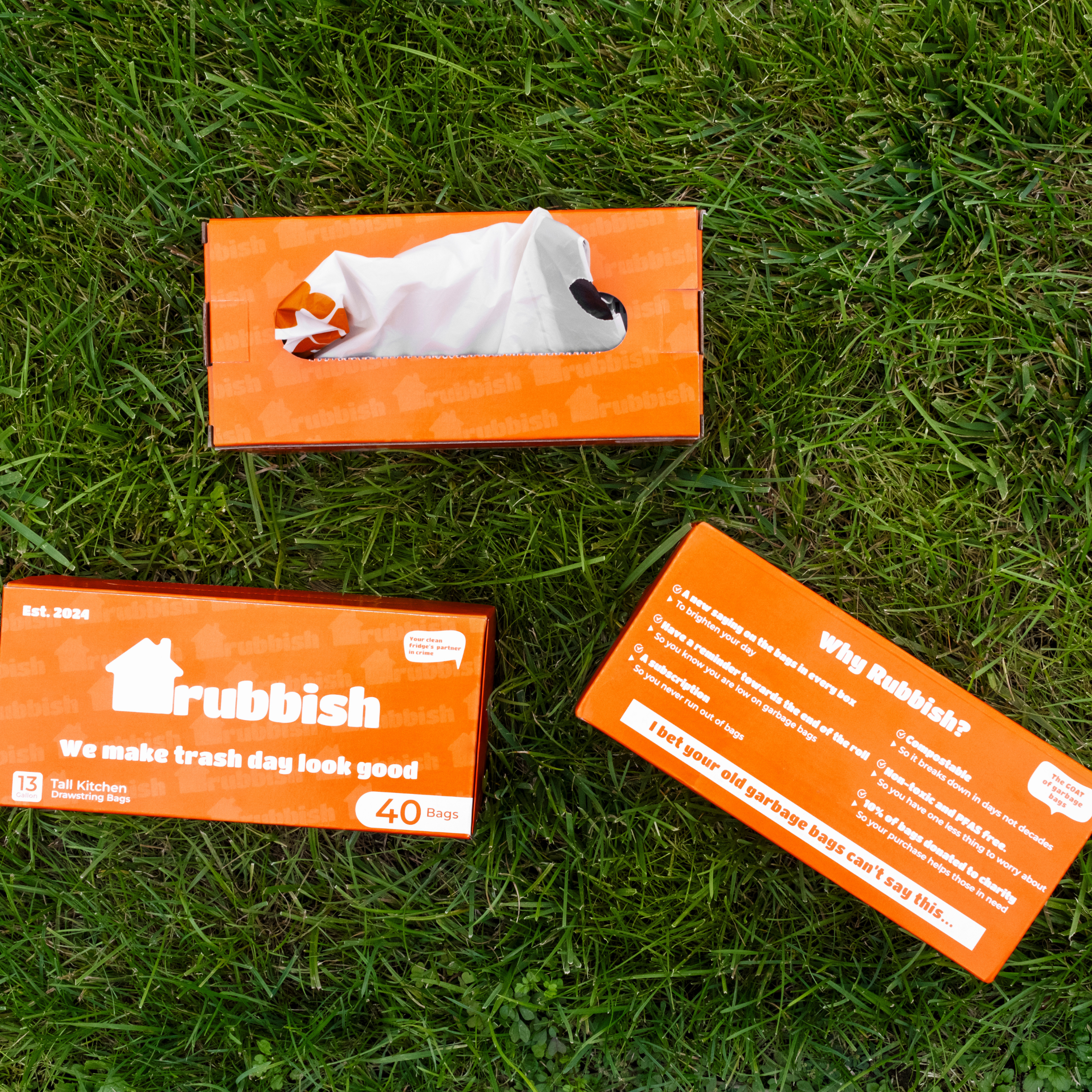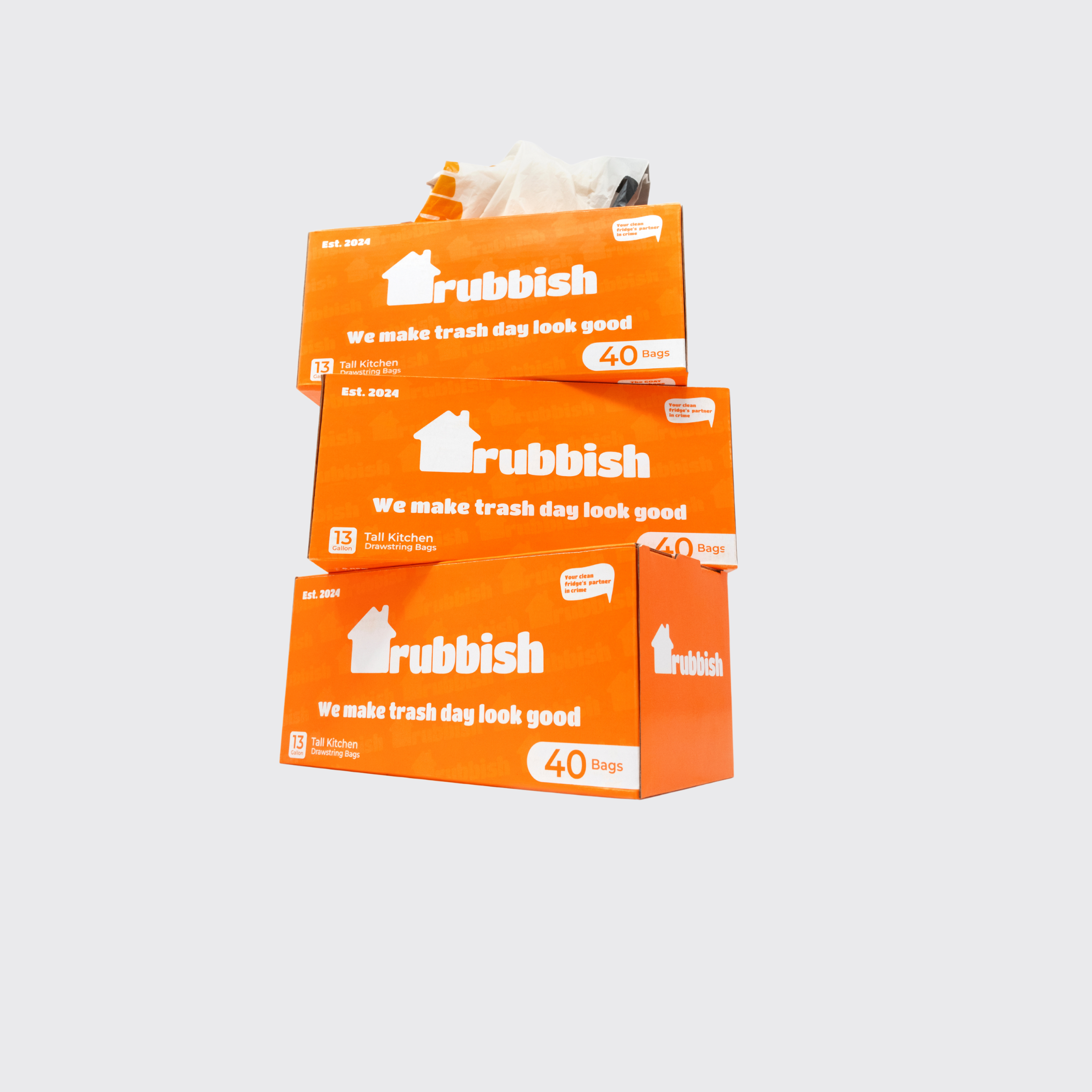 Rubbish currently offers 13-gallon kitchen garbage bags, with plans to expand our product line to meet the waste management needs of all consumers. Unlike other companies, we are committed to providing the highest quality garbage bags, using eco-friendly materials, and delivering a customer experience that is second to none.